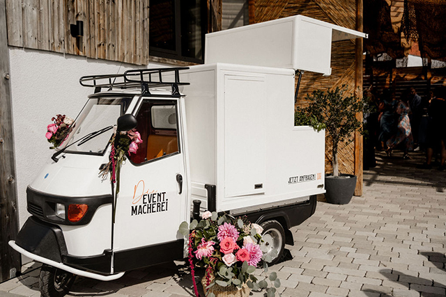 Unsere stylische Ape ist der perfekte Hingucker für jedes Event! Ob Hochzeit, Geburtstag oder Firmenfeier – mit ihrem italienischen Flair sorgt sie für unvergessliche Momente.